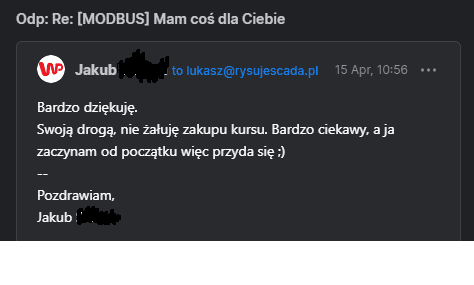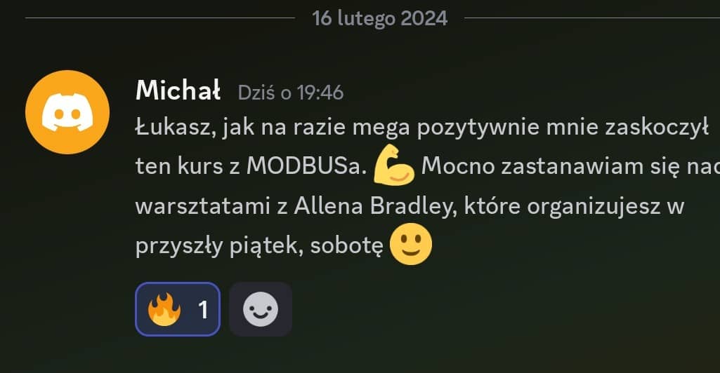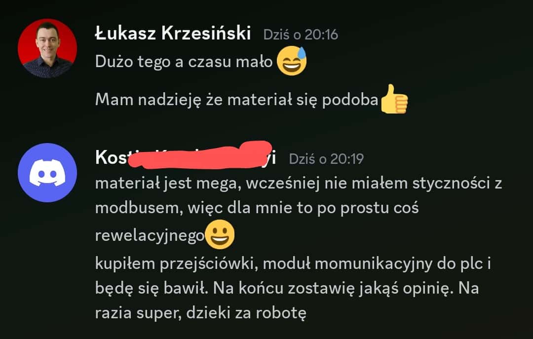 Materiał jest mega, wcześniej nie miałem styczności z modbusem, więc dla mnie to po prostu coś rewelacyjnego. Kupiłem przejściówki, moduł komunikacyjny do PLC i będę się bawił. Na razie super.